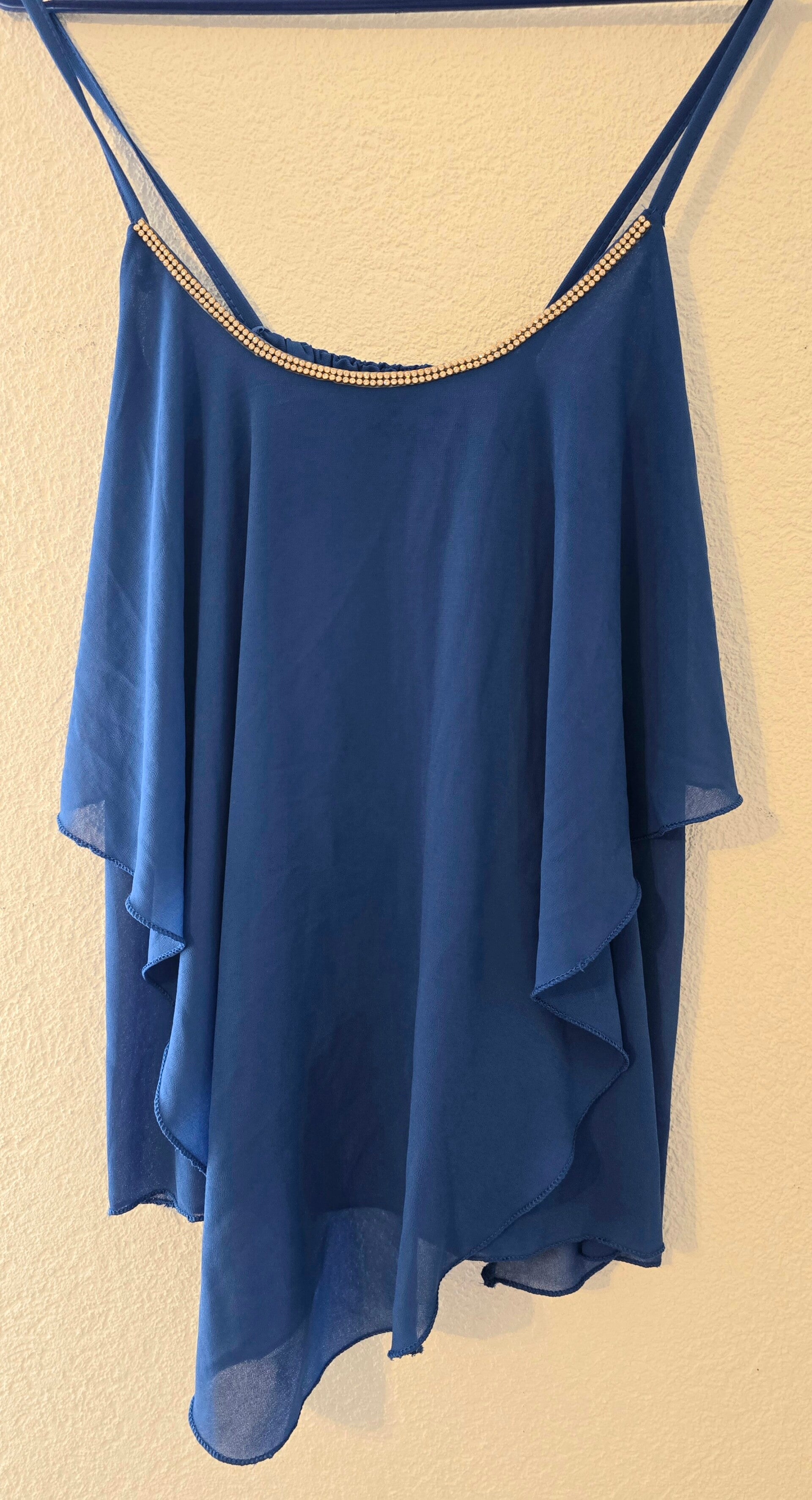 Elegantes Kobaltblaues Chiffon-Top Wasserfall-Design und Strassbesatz