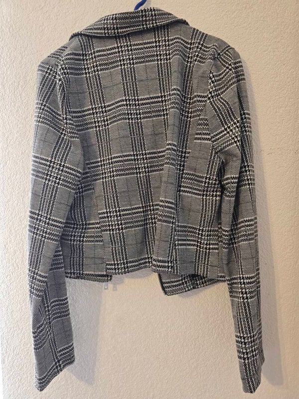 Diese stylische Jacke im modernen Zebra-Print und Glencheck-Muster ist ein vielseitiges Kleidungsstück, das Ihrem Outfit sofort einen schicken Touch verleiht. Die Kombination aus Schwarz, Weiss und Grau macht sie zu einem echten Hingucker und lässt sich hervorragend kombinieren.