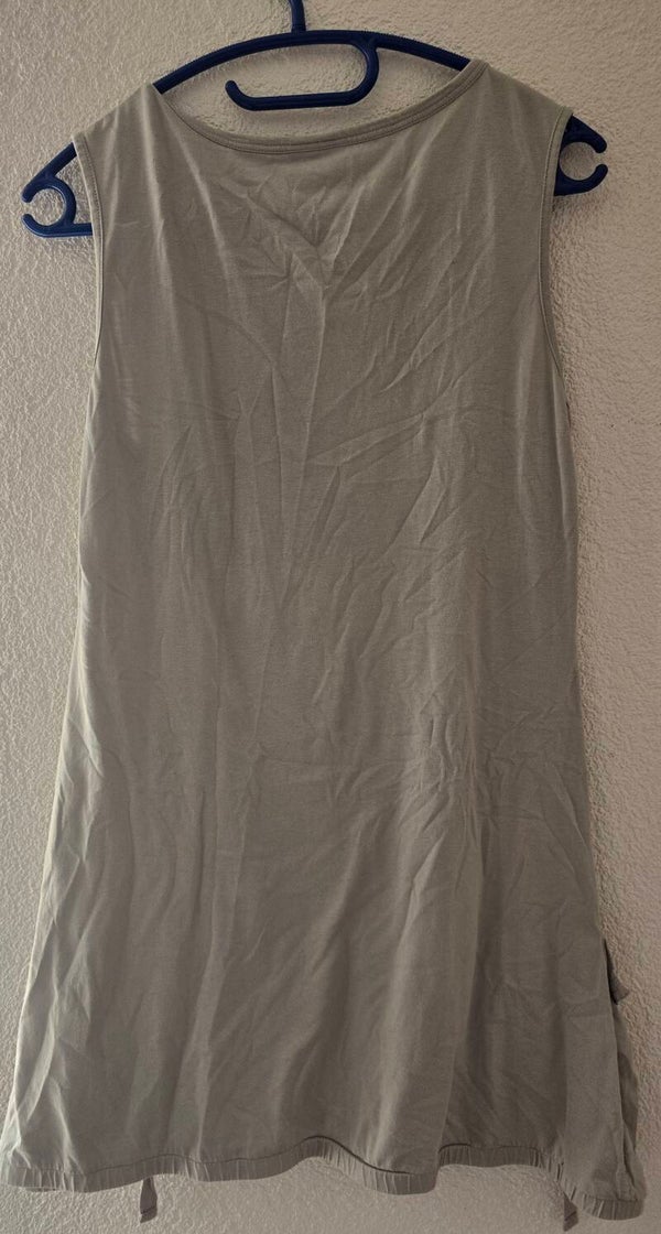 Dieses lässige Sommerkleid oder lange Tunika von Street One in Grösse L ist ein vielseitiges Basic für Ihre Garderobe. Das Kleid ist in einem engenehmen Grauton gehalten und hat einen Rundhalsausschnitt mit einer Knopfleiste im Brustbereich, die für eine legere Optik sorgt. Die ärmellose Passform ist ideal für warme Tage. Besondere Details sind die seitlichen Raffungen und Bänder am Saum, die dem Kleid einen individuellen und verspielten Look verleihen und die Länge anpassen lassen. Ob solo als kleid oder kombiniert mit Leggings oder Jeans als Tunika - dieses Kleid ist bequem und stylisch zugleich.