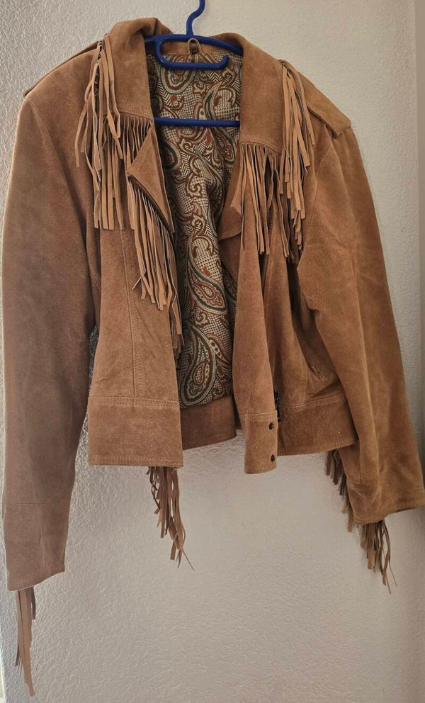 Vintage Wildlederjacke Gr. 40 mit Fransen - Echtes Leder braun