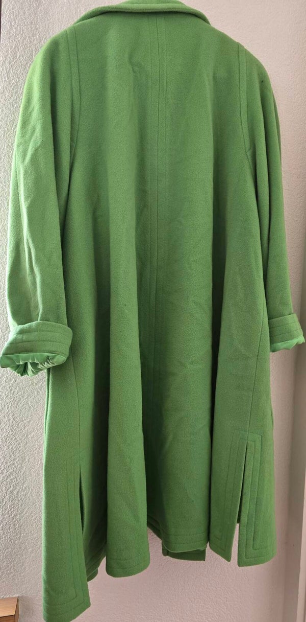 Dieser stilvolle Damen Mantel in einem auffälligen Apfelgrün ist in Grösse 36 und von der Marke Colette. Der Mantel hat einen klassischen Reverskragen und wird mit einem Reissverschluss geschlossen. Er verfügt über praktische, aufgesetzte Taschen und breite, umgeschlagene Manchetten. Die A-Linien-Form und die seitlichen Schlitze am Saum verleihen ihm eine elegante und fliessende Silhouette. Ein besonderes Detail sind die vertikalen Nähte im Rückenbereich. Ideal für Übergangszeiten und als modisches Statement.