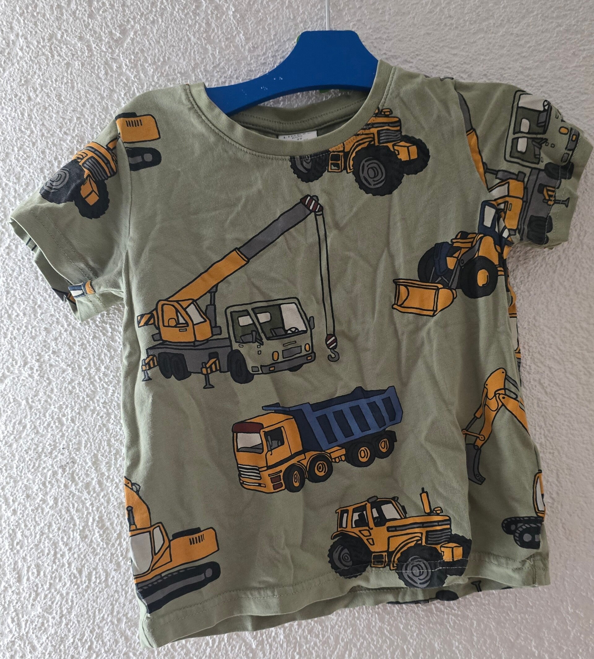 Lindex T-Shirt - Grösse 92 - Baustellenfahrzeuge / Bagger / Lastwagen