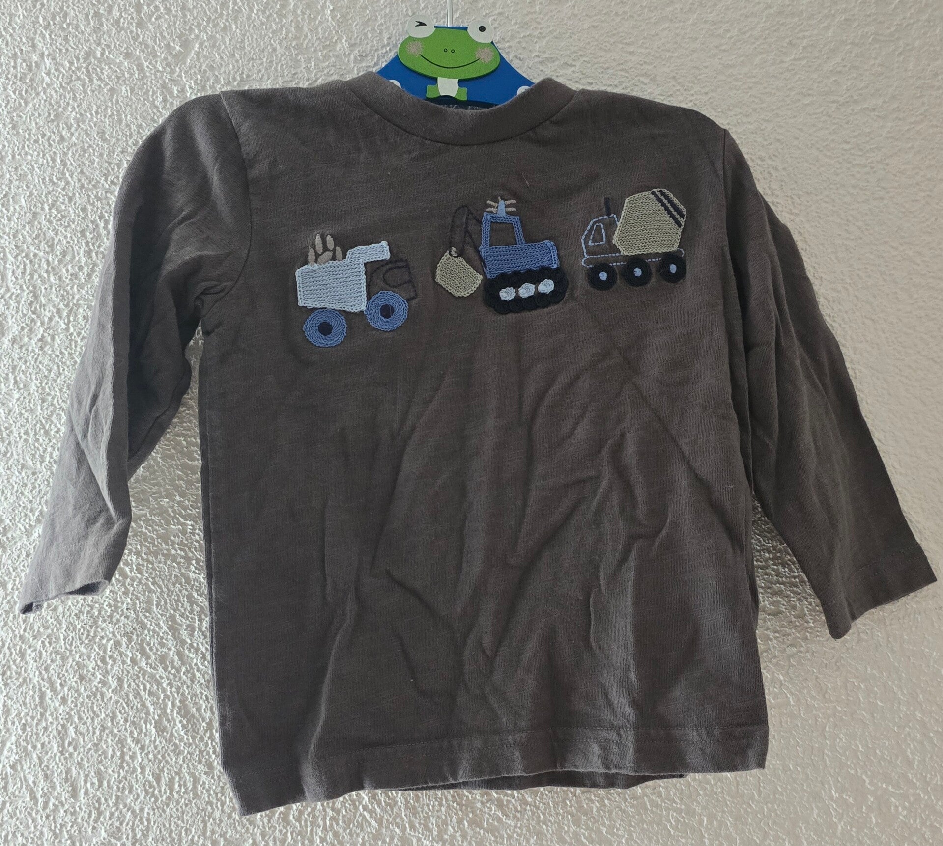 Verkaufe ein süsses Langarmshirt von Next für Jungen. Das Shirt ist in einem schönen Anthrazit-Ton gehalten und mit liebevoll gestickten Baufahrzeugen verziert, die das Shirt zu einem echten Hingucker machen. Ideal für kleine Baumeister.