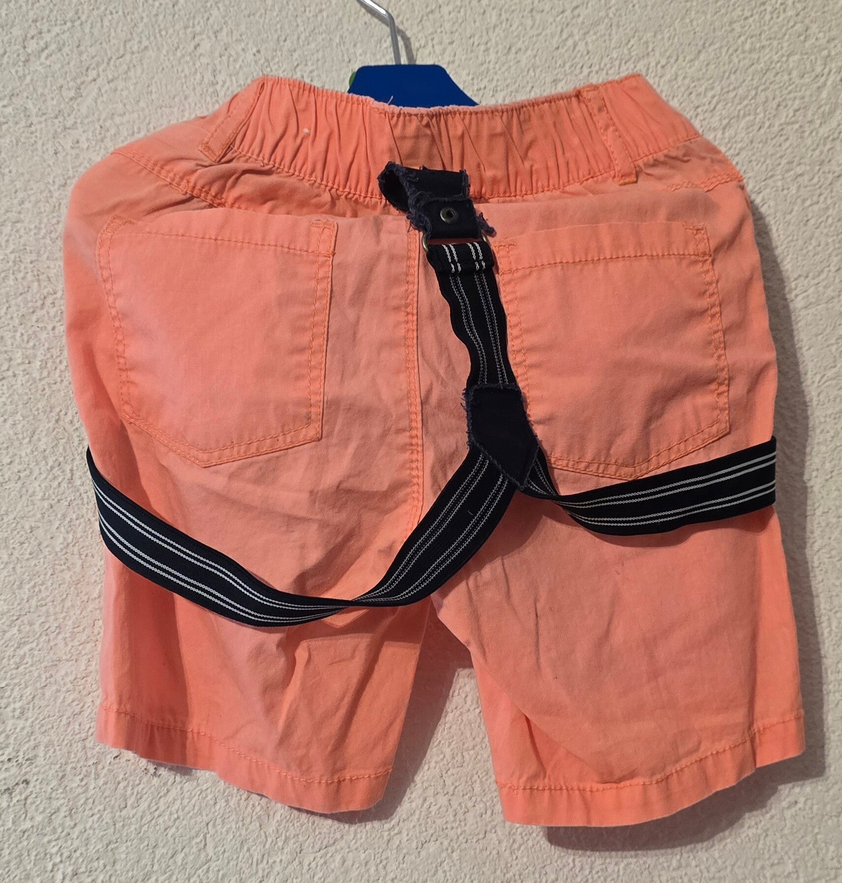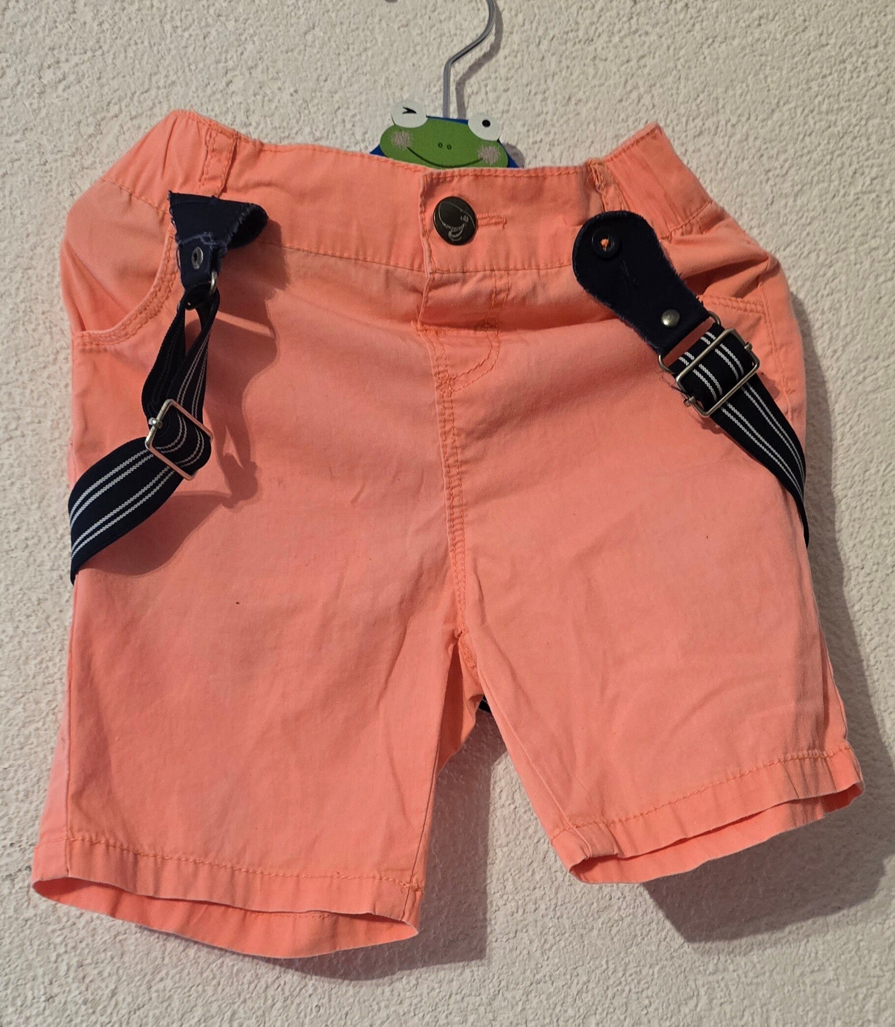 Verkaufe ein süsses Paar orangefarbener Shorts von Dopodopo in Grösse 80. Diese bequemen Shorts sind ideal für warme Tage und kommen mit abnehmbaren, dunkelblauen Hosenträgern, die einen stylischen Akzent setzen. Sie verfügen über praktische Taschen vorne und hinten und einen elastischen Bund für eine optimale Passform. Ein Must-have für kleine Entdecker.