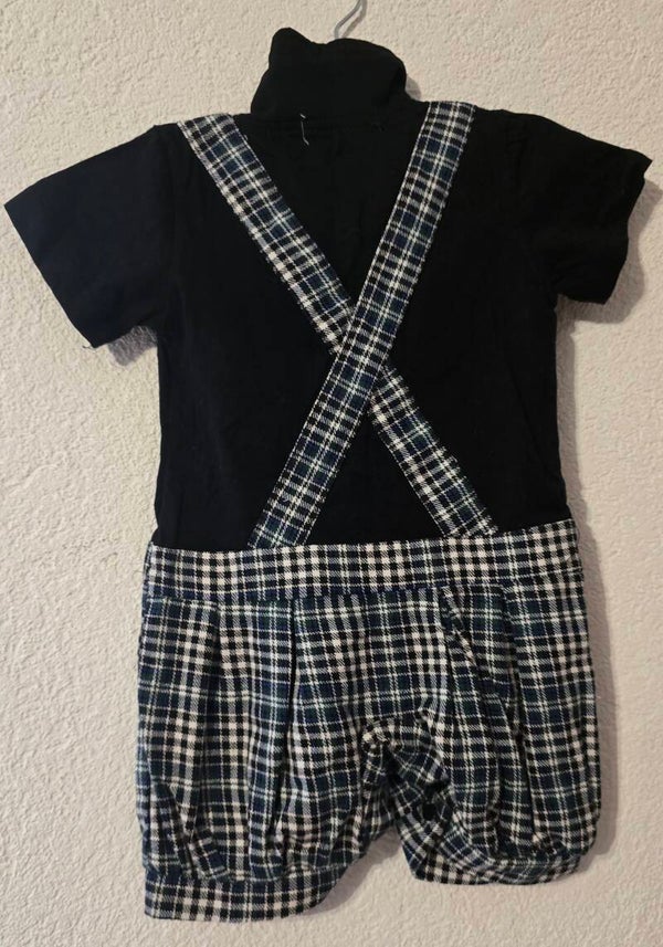 Verkaufe einen entzückenden festlichen Strampler von NYAN CAT in Grösse 95. Dieses charmante Outfit ist perfekt für besondere Anlässe! Es kombiniert ein schwarzes Oberteil mit einem schicken blau-grün-weissen Karo-Muster im unteren Bereich und passenden Hosenträgern. Eine süsse weisse Fliege rundet den Look ab. Die Hosenträger sind hinten über Kreuz befestigt. Der Strampler ist bequem geschnitten und verfügt über Druckknöpfe im Schritt für einfaches An- und Ausziehen.
