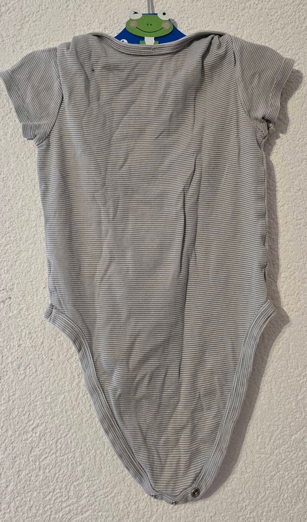 Verkaufe einen niedlichen und praktischen Kurzarm-Babybody von C&A. Der Body ist in einem klassischen Grau-Weiss gestreiften Design gehalten und somit vielseitig kombinierbar. Er ist aus angenehmem Material gefertigt und bietet optimalen Tragekomfort für Ihr Kind. Ideal für den Alltag und die wärmeren Monate. Mit praktischen Kruckknöpfen im Schritt für einfaches Windelwechseln und am Ausschnitt zum bequem An- und Ausziehen.