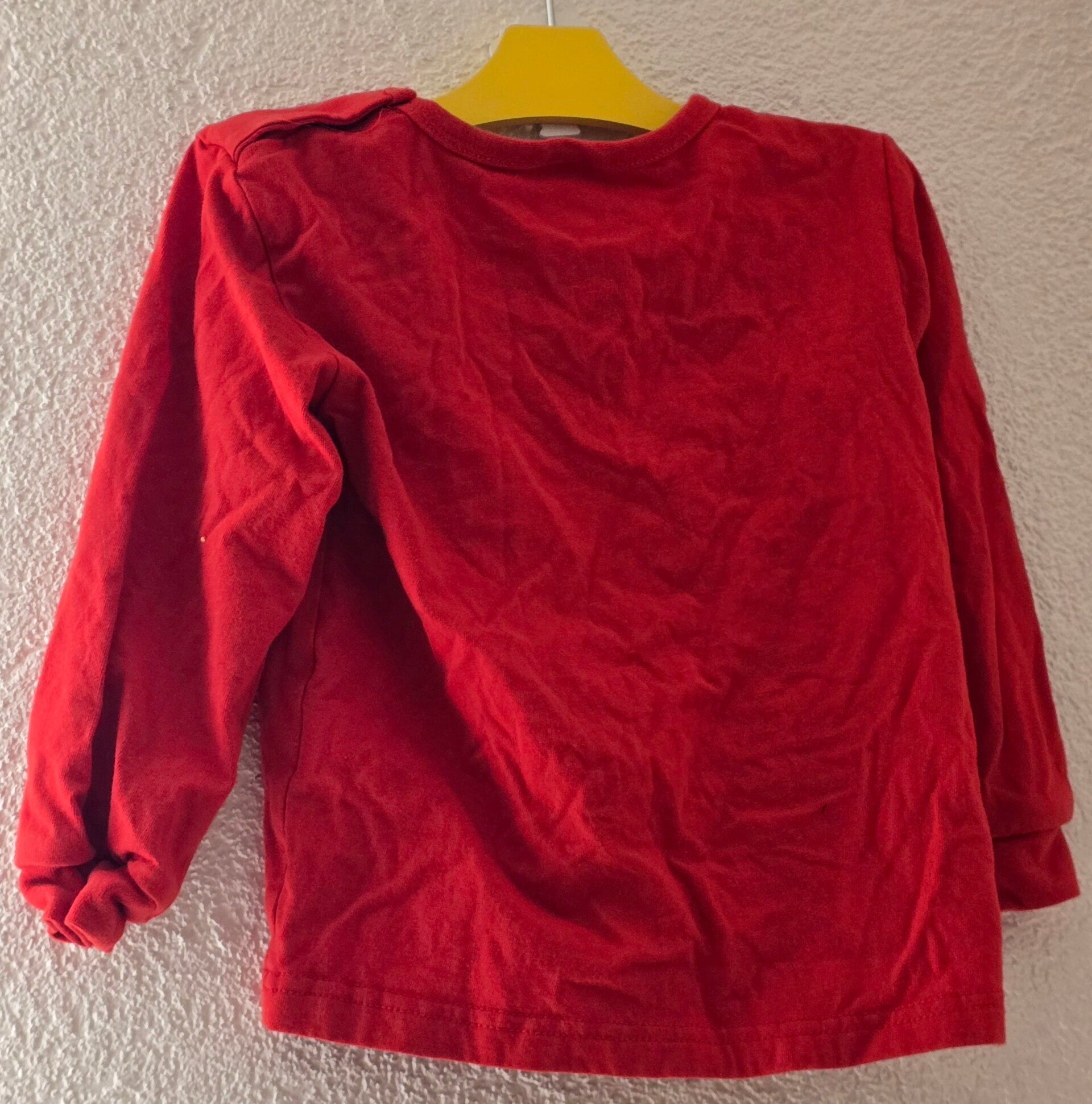 Verkaufe ein niedliches rotes Langarmshirt in Grösse 98. Auf der Vorderseite ist ein kleiner Weihnachtsbaum mit der Aufschrift merry christmas aufgedruckt. Perfekt für festliche Anlässe, Familienfeier oder einfach, um in Weihnachtsstimmung zu kommen. Sehr guter Zustand.
